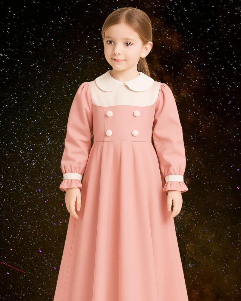 مريول وردي أنيق بتصميم طفولي راقٍ، يتميز بقصة مميزة من الصدر مزينة بأزرار أمامية تضيف لمسة كلاسيكية جذابة. يأتي المريول بياقة دائرية بيضاء تمنحه مظهراً ناعماً ومشرقاً، وأكمام طويلة مزودة برباط أبيض وكشكشة خفيفة عند المعصم تضيف لمسة أنثوية مميزة. المريول قطعة واحدة صُمم لراحة طفلتك بخامة ناعمة وانسيابية، مع تصميم حصري من وسام هند يمنحها الأناقة والراحة طوال اليوم، ليكون خياراً مثالياً للمدرسة والروضة